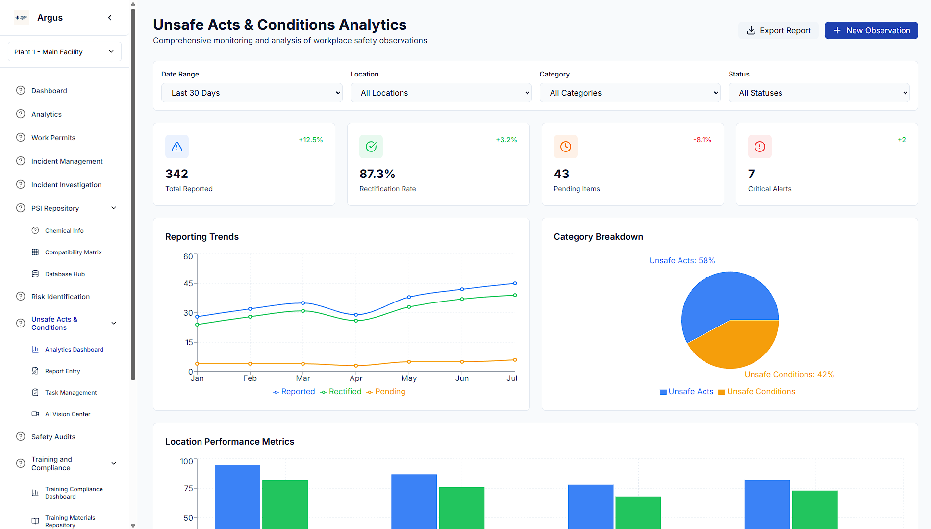 Rubicr® ARGUS is an AI-powered, unified safety management platform designed for industrial and high-risk operational environments. It connects people, sites, and safety systems into a single digital environment—enabling real-time safety monitoring, incident visibility, compliance tracking, and coordinated response across operations. Argus strengthens workforce protection and operational safety across complex, distributed facilities.